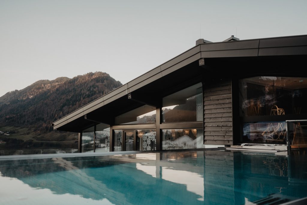 Einzigartig ist das Puradies aber nicht nur aufgrund seiner herrlichen Lage, sondern auch optisch: Die moderne Architektur in dem feinen Hotel vereint Alt und Neu perfekt. Die Zimmer und Suiten spiegeln diese Symbiose wider, mit geradlinigem Interieur und einem atemberaubenden Ausblick. Besonders elegant und optisch sicherlich ein Alleinstellungsmerkmal in der Region ist aber das Heaven Spa, das Infinity Pool mit Alpenblick, Adults Only Bereich und Kaminlounge bietet.